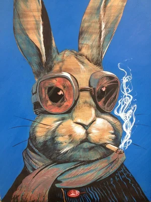 A mixed media portrait of longtime Laguna Blanca PE coach Ray Robitaille, gilded with 22K gold leaf in a strange mishmash of Byzantine saint murals and retro Walkman inspired lines. Derived from a 1984 yearbook photo from his early days at the school, its painted with acrylic ink/paint on a 24”x 30” wood panel.